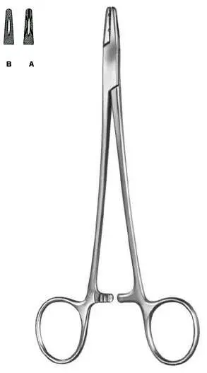 Needle Holder one grooved and fenestrated jaw